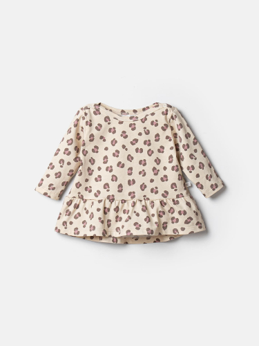 Изящная горловина-лодочка с мягкой бейкой и застёжкой на кнопках по плечу облегчает переодевание, особенно актуальна для чувствительных малышей.