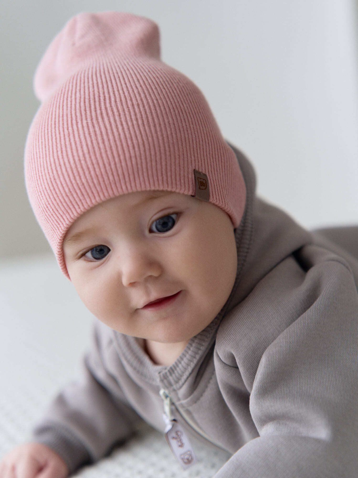 Шапка хлопковая двухслойная "Пыльная роза" 0+