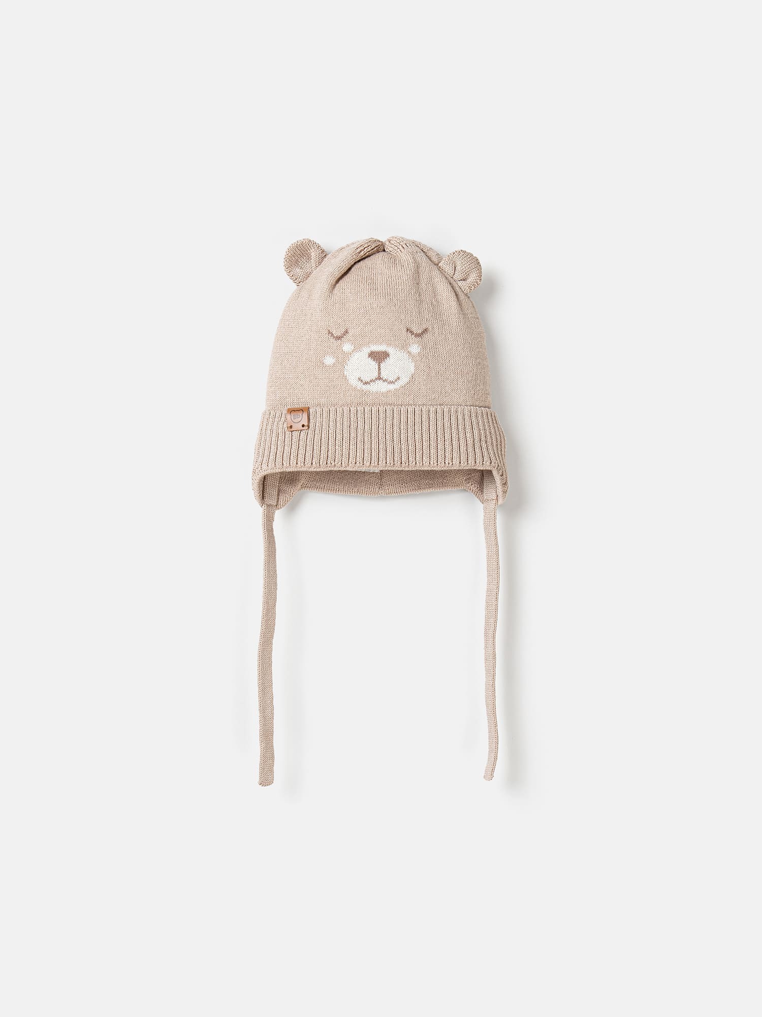 Декоративные ушки и жаккардовый рисунок с мордочкой мишки.