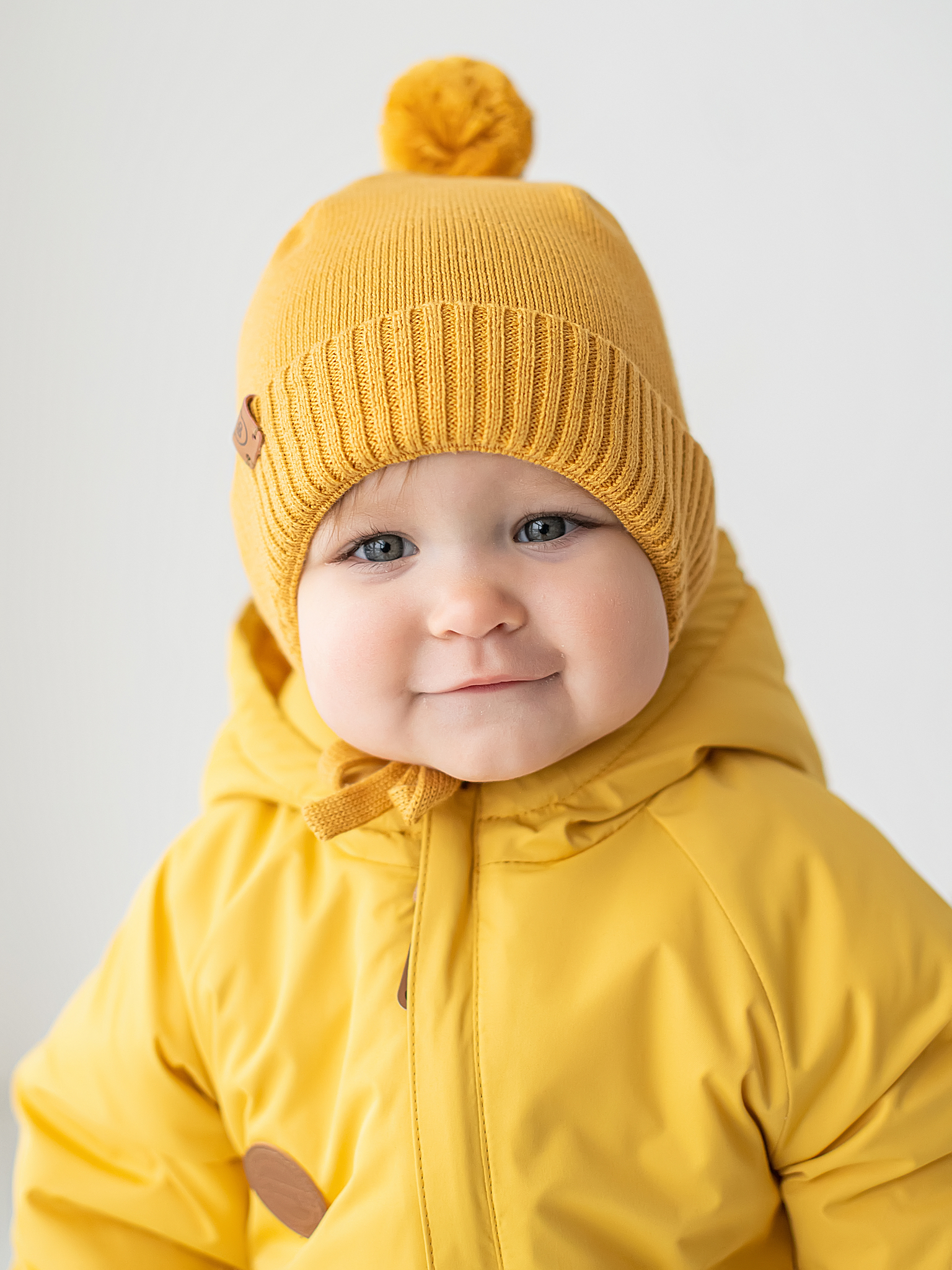 Шапка хлопковая однослойная на подкладе "Горчица" 0+