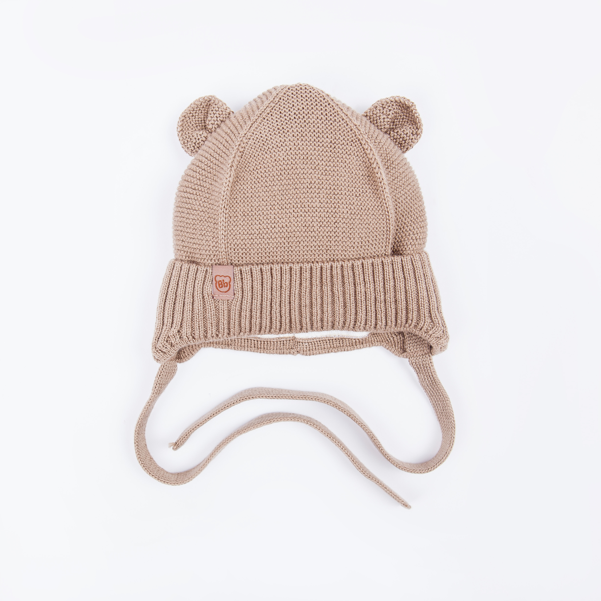 Шапка хлопковая однослойная с ушками на подкладе "Беж" на завязках 0+
