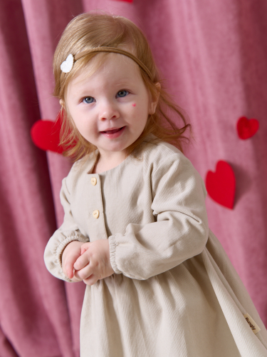 Шапка надежно фиксируется на голове малыша с помощью завязок.