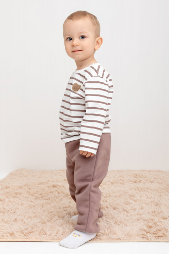 Однотонные брюки для мальчика из эластичного петельчатого футера, произведённого из высококачественного натурального хлопка. Пояс изделия на резинке, по бокам имитация карманов. Брюки сохраняют цвет и форму после многократных стирок.