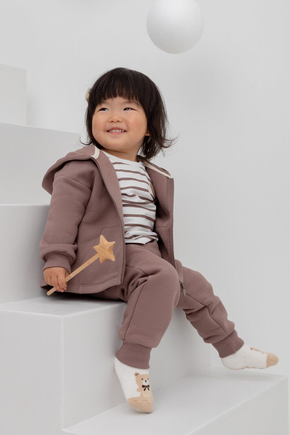 Трикотажные брюки для девочки из футера с начесом. В составе 80% натурального хлопка и 20% полиэстера, при этом полиэстер ввязан внутрь по особой технологии и не соприкасается с кожей. Эластичный пояс на резинке, внизу эластичные манжеты.