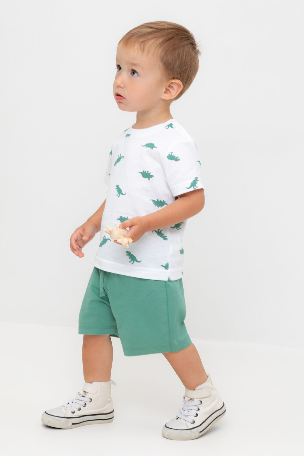 Легкие трикотажные шорты для мальчика из высококачественного хлопка. Эластичный пояс регулируется при помощи шнурка.
