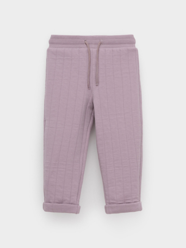Тёплые брюки для девочки из мягкого капитония. Капитоний – это стёганое трикотажное полотно с утеплителем из полиэстеровой нити. Модель с эластичным поясом на резинке регулируется по ширине при помощи шнурка. Все трикотажные полотна производятся в соответствии с нормами швейцарского сертификата ЭкоТекс.