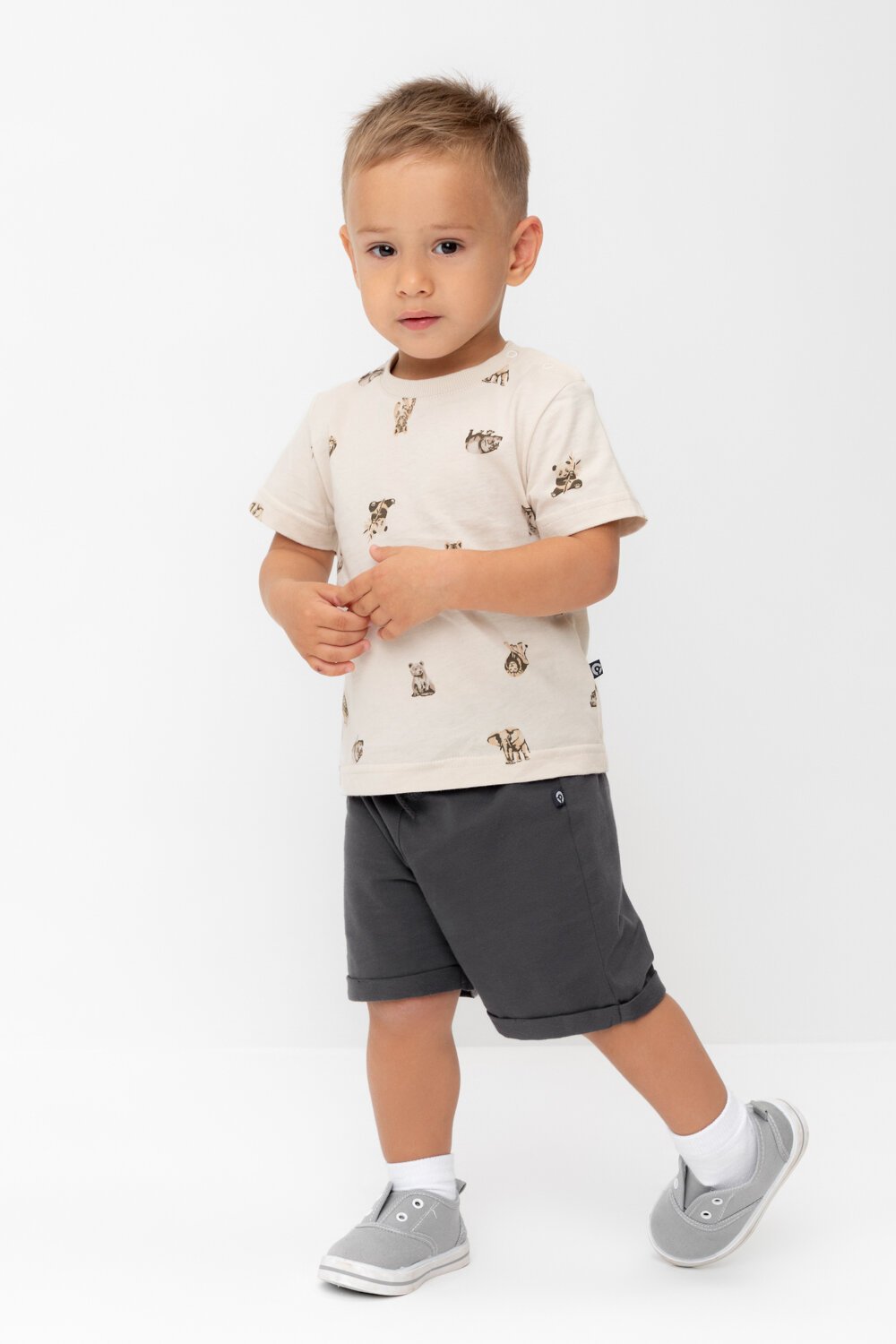 Легкие трикотажные шорты для мальчика из высококачественного хлопка. Эластичный пояс регулируется при помощи шнурка.