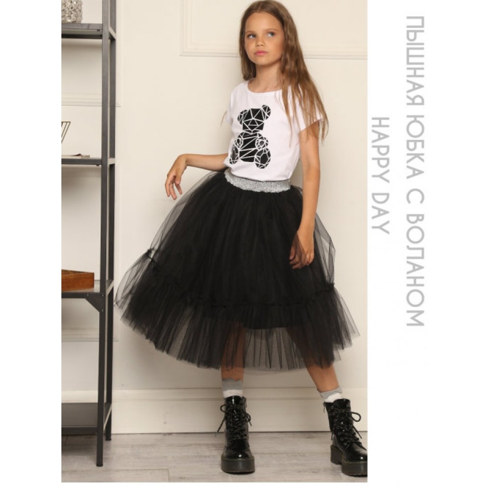 Объемная, пышная юбка для девочек из коллекции "HAPPY DAY" с воланом  для особых случаев: дни рождения, школьные праздники, праздники в детских садах, выступления, вечеринки, диско и тд...
