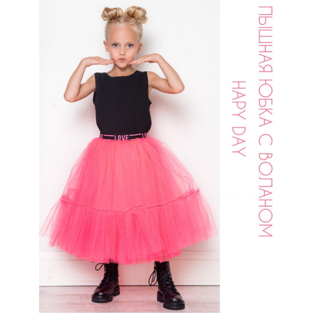 Объемная, пышная юбка для девочек из коллекции "HAPPY DAY" с воланом  для особых случаев: дни рождения, школьные праздники, праздники в детских садах, выступления, вечеринки, диско и тд...