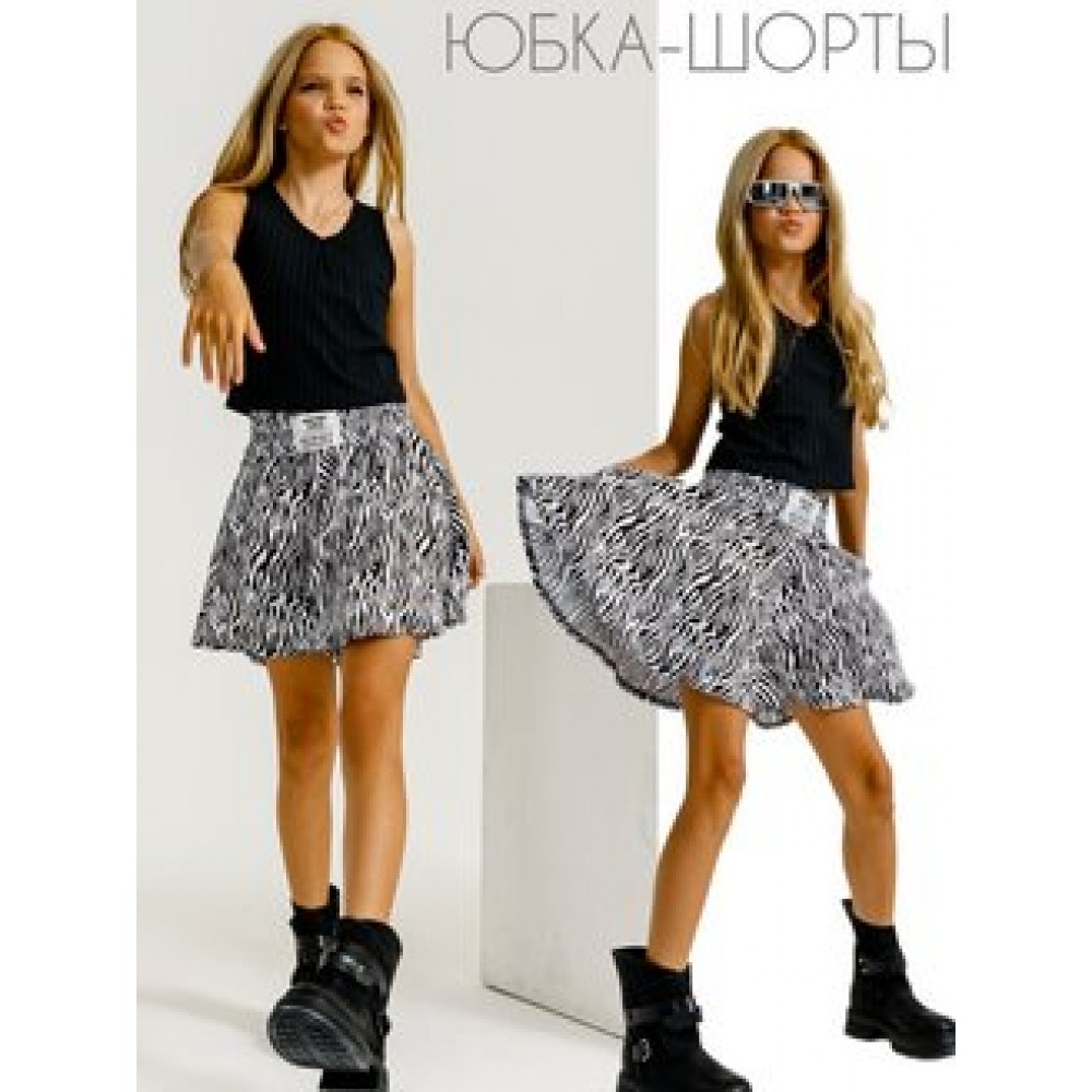 Юбка-шорты черно-белая