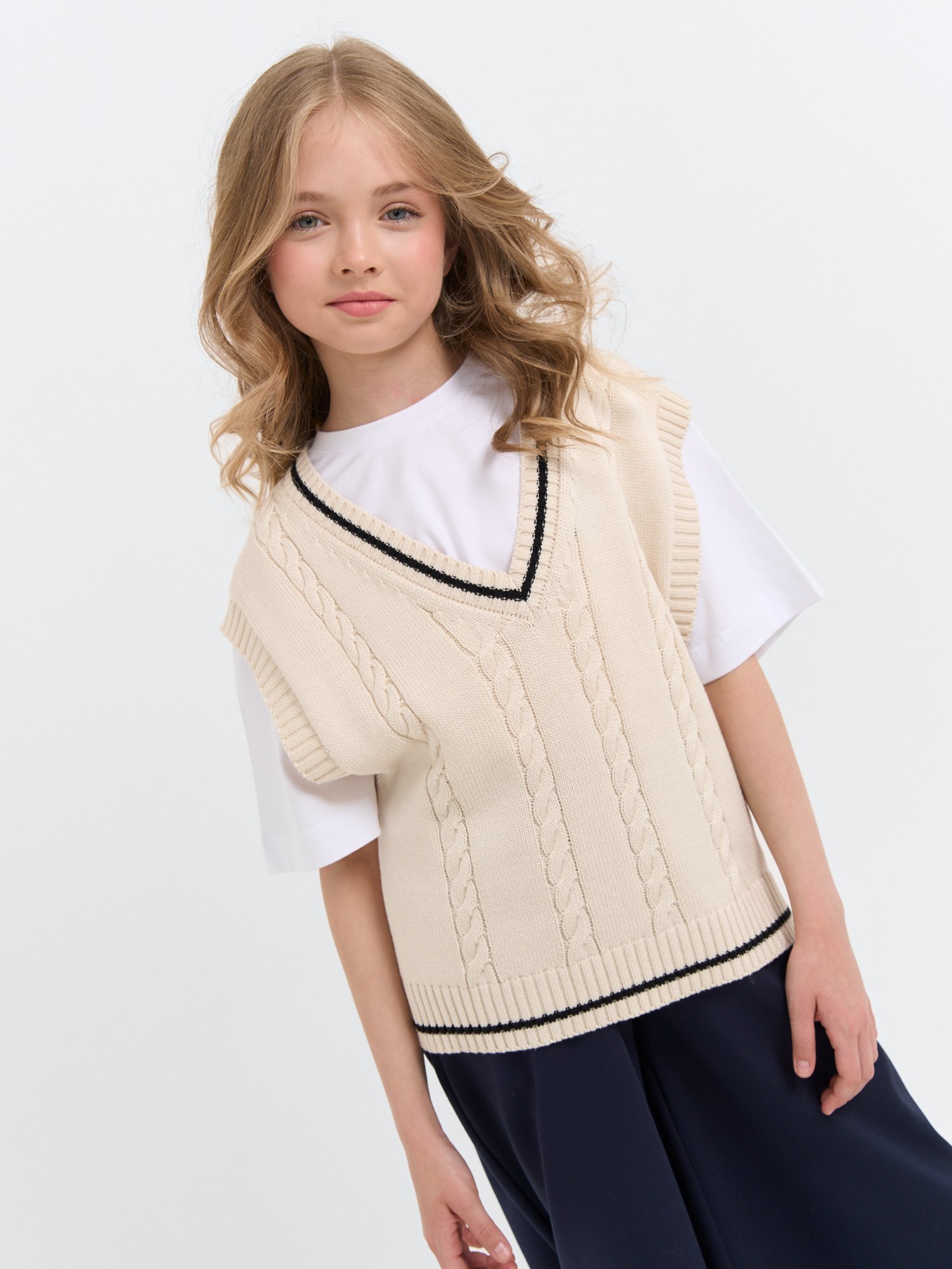 Жилет оверсайз вязаный "Белый" 7+