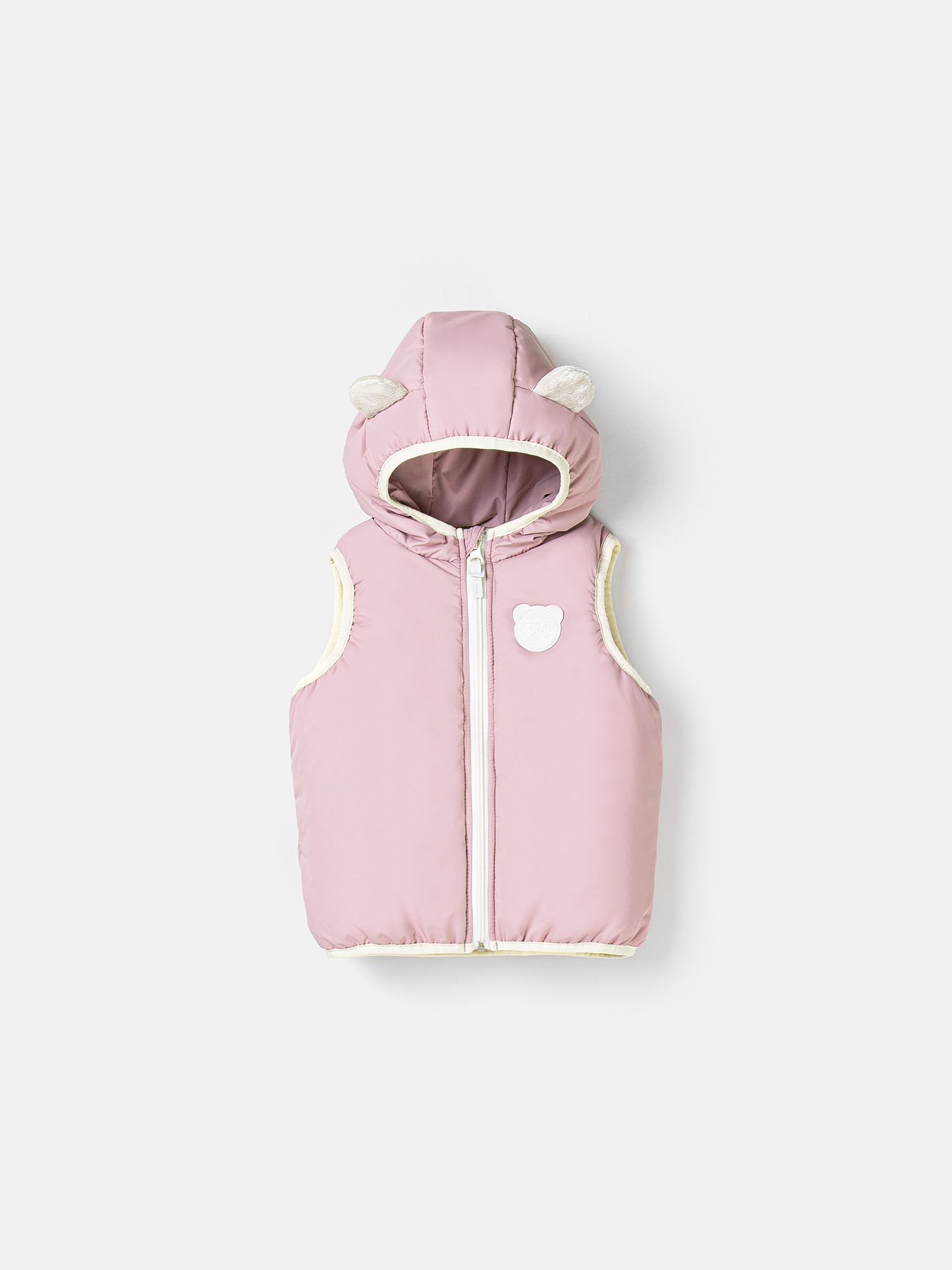 Утеплённый жилет для малышей с капюшоном и ушками.