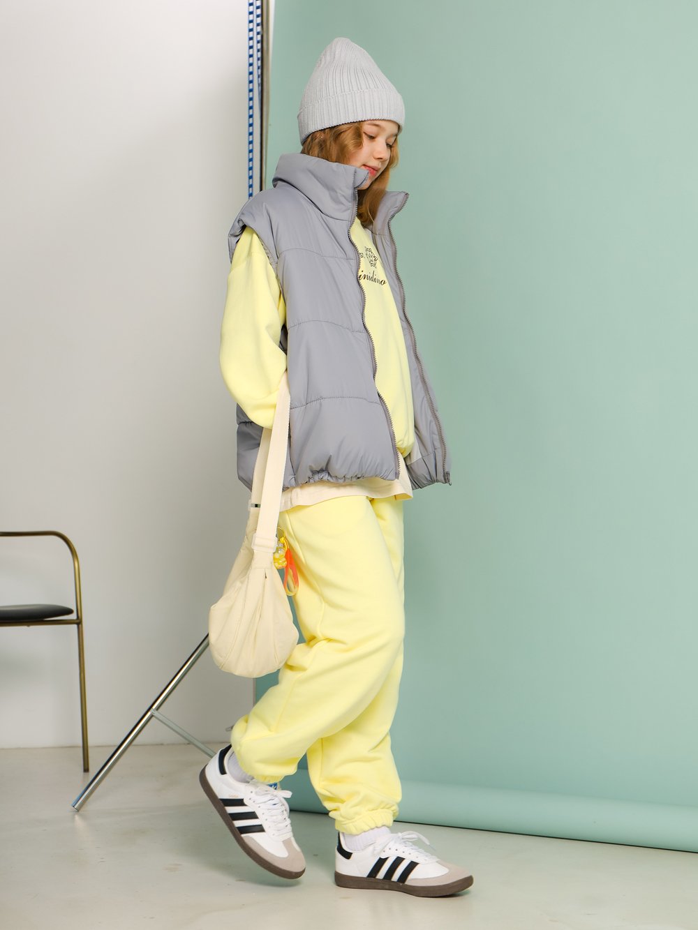 Жилет утепленный, силуэт оверсайз с горизонтальной стежкой. Высокий воротник-стойка.  Основная застежка на тракторную молнию. Карманы в боковых швах. Спущеная линия плеча и низкая пройма (для удобства в сочетании с моделями оверсайз). По линии низа втачана узкая резинка для создания формы-бочонка.
