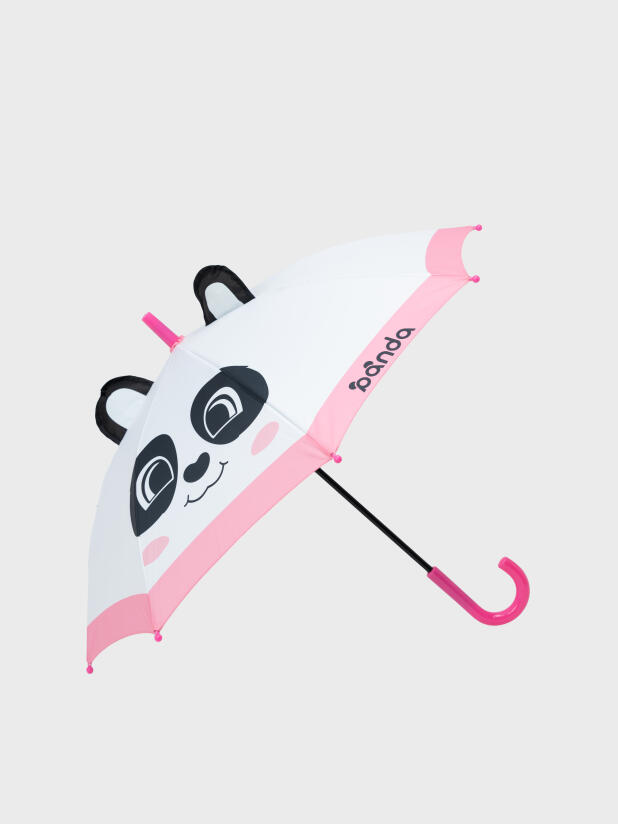 Детский зонт для девочки. Зонт-трость милая панда с объемными ушками. Идеально сочетается с резиновыми сапогами и дождевиком из коллекции. Длина 67 см, диаметр купола 76 см. Механизм складывания - полуавтомат.