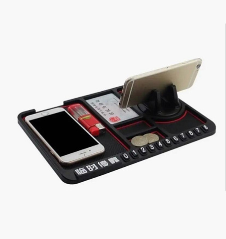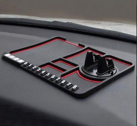 Многофункциональный автомобильный противоскользящий коврик на приборную панель автомобиля - незаменимый помощник для водителей и пассажиров в машине. Держатель для телефона имеет удобное крепление, позволяющее повернуть смартфон под удобным углом обзора. Коврик на панель авто подходит для всех моделей автомобилей, что делает его универсальным. Коврик для телефона автомобильный оснащен плоской нескользящей силиконовой основой, поэтому вы можете быть спокойны, при поездке, ваши очки, телефон, наушники и ключи будут надежно зафиксированы. Автовизитка парковочная расположена на коврике, что позволяет использовать держатель в авто еще эффективнее. Теперь вам не понадобится табличка с номером телефона в машину, наш автомобильный держатель прекрасно исполняет эту функцию
