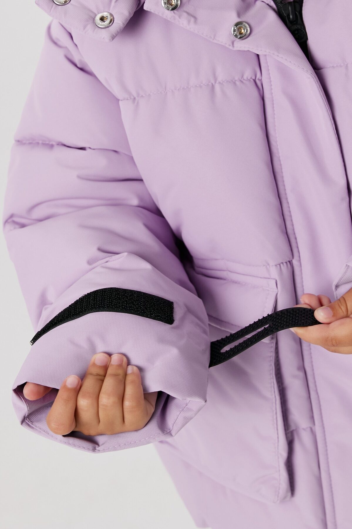 Детская утеплённая куртка для девочки выполнена из мембранной ткани с водоотталкивающей пропиткой, что защищает не только от дождя и ветра снаружи, но и не покрывается влагой от испарений тела изнутри. Водонепроницаемость 5000 защитит и от моросящего дождя, и даже от кратковременного ливня. Подкладка выполнена из стандартной подкладочной ткани. Вид утеплителя – синтепух (вес 250г/м2). Рекомендованный температурный режим от +5 до -15 градусов. Застежка на молнию с внутренней и внешней ветрозащитными планками защищает от проникновения холодного воздуха. Внешняя планка застегивается на кнопки. На карманах и на спинке расположены светоотражающие элементы, которые обезопасят ребенка в темное время суток. Воротник и капюшон на кнопках избавляют от необходимости носить шарф. Внутри куртка дополнена съемными лямками, что позволяет ребенку снять куртку в помещениях и не носить в руках. Два боковых кармана и карман на молнии, расположенный на рукаве, позволяют хранить нужные мелочи. Внутренняя ветрозащитная юбка на кнопках дополнительно защищает от холодного воздуха. По низу рукавов расположены трикотажные манжеты, которые регулируются утяжками. Модель представлена в двух вариантах: разноцветном и сиреневом. Добавьте куртку в гардероб ребенка для создания теплых и комфортных образов.