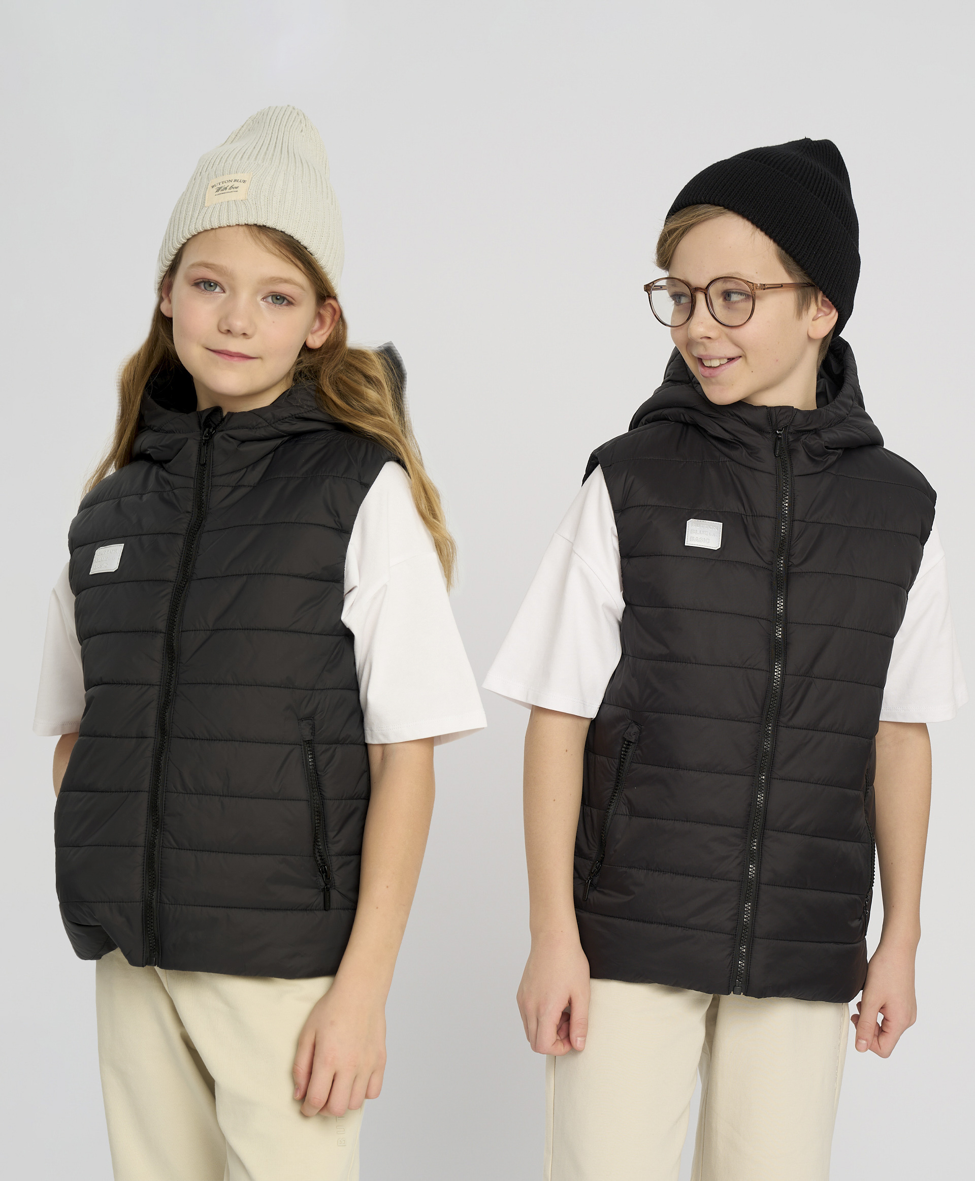 1248 р. 1919 р. Жилет детский утепленный стеганый черный с капюшоном Button Blue