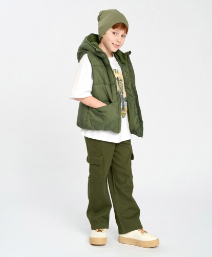 цветЧерныйверх:100% нейлон; подкладка:100% полиэстер; утеплитель:искусственный пух/100% полиэстер До +10°С Полиэстер Жилет детский утепленный черный стеганый Button BlueИскусственный пух/ подкладка - трикотаж
