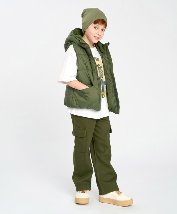 1560 р. 2400 р. Жилет детский утепленный хаки стеганый с капюшоном Button Blue