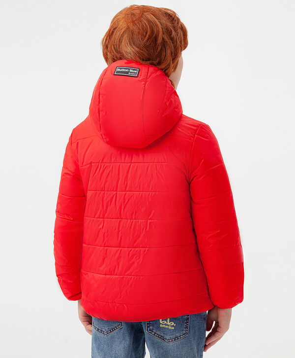 Яркая базовая утепленная куртка с капюшоном красного цвета для мальчика - необходимый элемент гардероба ребенка в межсезонье. Синтепоновый наполнитель плотностью 120 г/м2 обеспечит необходимый уровень тепла и комфорта в прохладную погоду. Модель оснащена текстильным подкладом из гладкого полиэстера, что позволит ребенку быстро надевать куртку на любую одежду. Капюшон, низ и манжеты на рукавах дополнены тонкими резинками с легкой фиксацией, которые помогут сохранить тепло внутри изделия. Куртка застегивается на молнию с защитой подбородка. Несъемный капюшон сзади оснащен стильным брендированным патчем-нашивкой. На полочке изделия расположены два удобных прорезных кармана, в которых можно носить важные мелочи. Свободный крой модели обеспечивает комфорт в ежедневной носке и легкость в движениях. Специальная пропитка PU придает поверхности устойчивость против воды и грязи. Детская стеганая весенняя куртка длиной до бедра представлена в широком размерном диапазоне от 98 до 158. Универсальная модель оптимально сочетается с большим разнообразием джинсов, брюк, джоггеров и шапок из коллекций Button Blue.