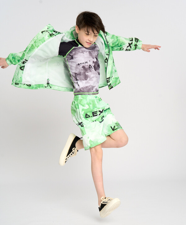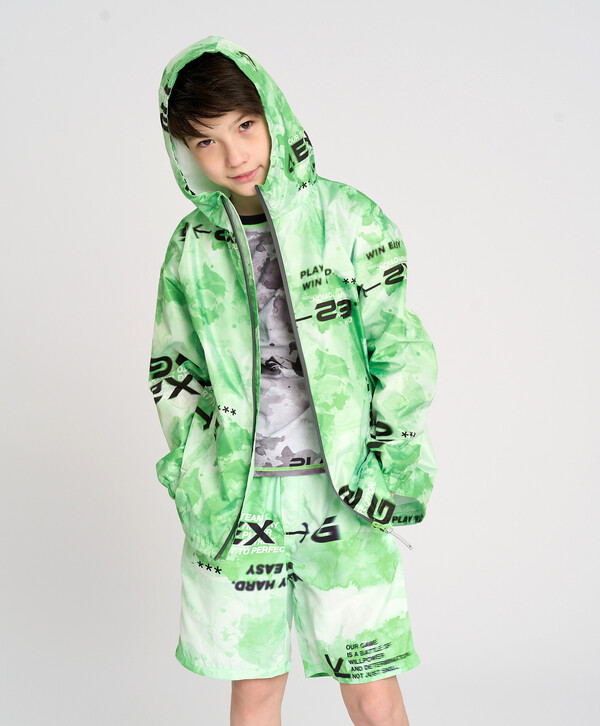 цветМультицветверх:100% полиэстер; подкладка 1:100% полиэстер; подкладка 2:100% полиэстер До +15°С Полиэстер Ветровка детская непромокаемая с капюшоном салатовая Button BlueПодкладка - сетка