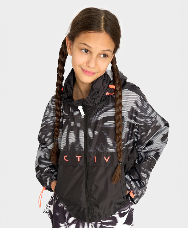 цветМультицветверх:100% полиэстер; подкладка 1:100% полиэстер; подкладка 2:100% полиэстер До +15°С Полиэстер Ветровка для девочки непромокаемая с капюшоном черная Button Blueподкладка-сетка