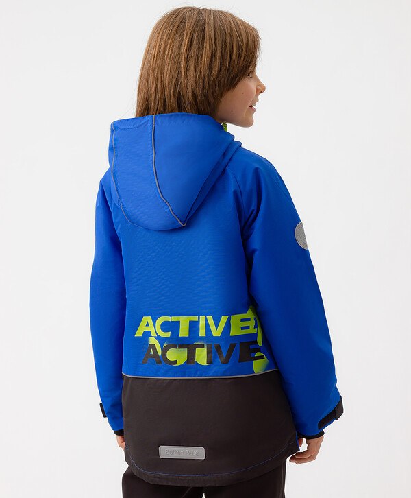 Яркая синяя ветровка для мальчика из серии ACTIVE - необходимая вещь в гардеробе в межсезонье. Верх куртки выполнен из комбинированной мембраны - технологичного материала со свойствами водонепроницаемости - 10000 мм, и воздухопроницаемости - 10000 гр/кв.м. Такая ткань с легкостью защитит ребенка от непогоды - от влаги, ветра и грязи. Подклад изделия выполнен из мягкого флиса, который отлично сохраняет тепло, приятен на ощупь и хорошо отводит влагу, поэтому в такой куртке можно смело активно двигаться и весело играть. Модель прямого кроя с рукавами реглан и со слегка удлиненной округлой спинкой обеспечит свободную посадку и подарит легкость в каждом шаге, что особенно важно для юных исследователей. При желании можно затянуть низ изделия при помощи утяжек с фиксаторами, чтобы ограничить попадание ветра под куртку. Детская ветровка застегивается на молнию с защитой подбородка и оснащена ветрозащитной планкой на липучках. Несъемный капюшон с возможностью утяжки сохранит голову и шею ребенка в тепле. Один накладной карман сверху и два прорезных кармана снизу оснащены молниями, поэтому в них спокойно можно хранить важные мелочи. Эластичные манжеты с отверстием для пальца и возможность регулировать ширину рукава при помощи липучек ограничат доступ холодного воздуха вовнутрь. Ветровка с яркими салатовыми вставками и крупным стильным принтом на спинке однозначно будет дарить ребенку отличное настроение в любую погоду. Универсальная модель оптимально сочетается с большим разнообразием джинсов, джоггеров и брюк из коллекций Button Blue. Несомненным преимуществом куртки являются светоотражающие элементы на рукаве, пуллерах, спинке, капюшоне и шве, которые обеспечивают дополнительную безопасность в темное время суток. Модель длиной до середины бедра представлена в широком размерном диапазоне от 98 до 158. Для того, чтобы мембранная ткань длительно сохраняла свои свойства, необходимо соблюдать особые рекомендации по уходу, указанные на внутренней этикетке.