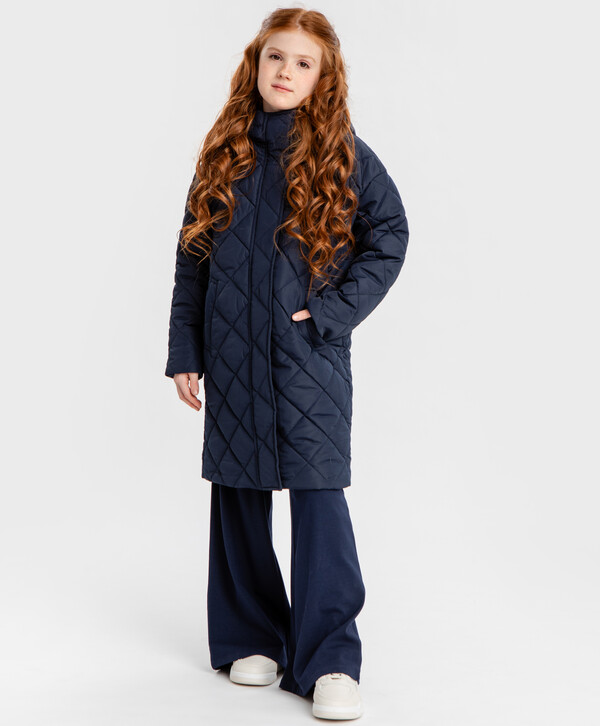 2600 р. 4000 р. Пальто стеганое с капюшоном демисезонное синее для девочки Button Blue