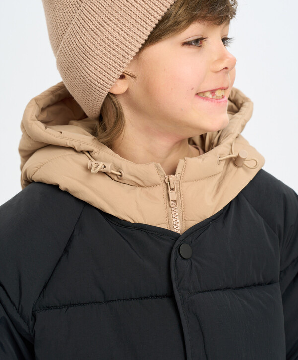 цветМультицветверх:100% полиамид; подкладка 1:100% полиэстер; подкладка 2:100% полиэстер; утеплитель:искусственный пух/100% полиэстер Полиамид Куртка детская демисезонная оверсайз черная с капюшоном Button BlueИскуственный пух/ подкладка трикотаж