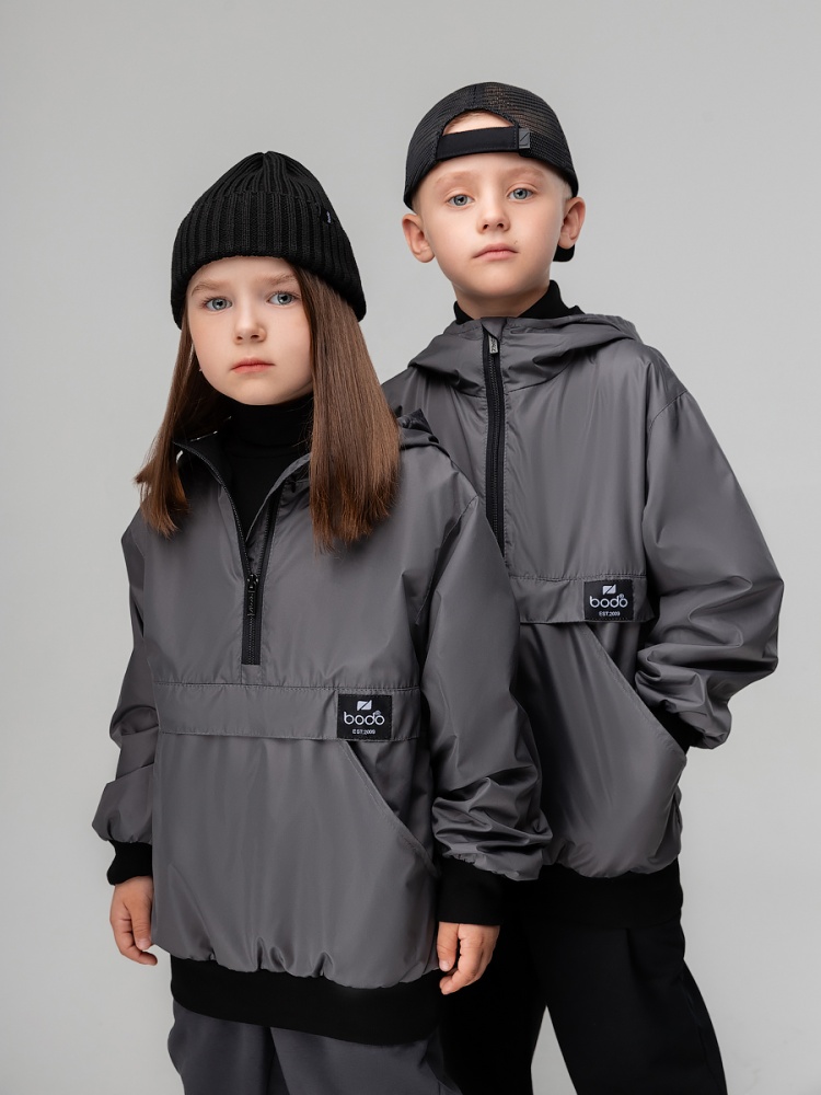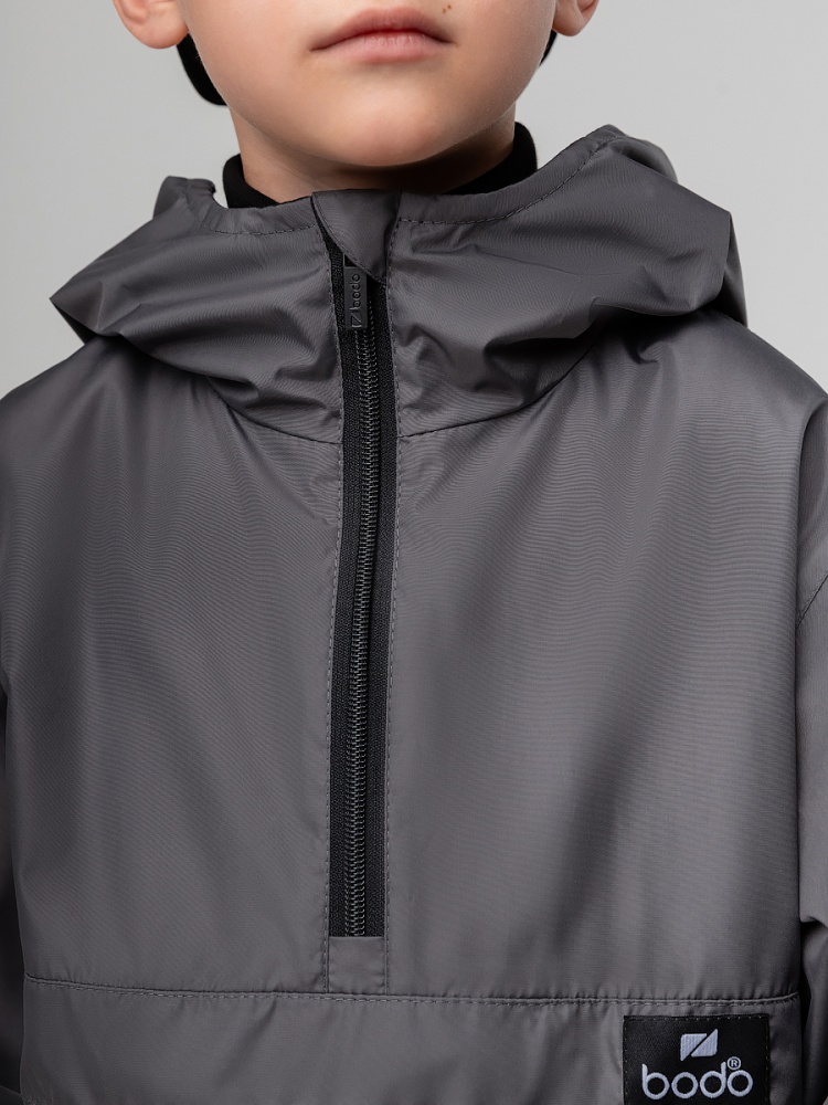 Материал Дюспо Состав 100% полиэстер Стильная ветровка анорак для детей. Материал верха: Дюспо, материал подклада хлопок 100 %, материал подклада на рукавах таффета. Материал Дюспо: водоотталкивающий, воздухообменный и ветрозащитный. Детали: сквозные боковые карманы, несъемный капюшон на стойке закрывает шею.Температурный режим: от +10 гр. зависимости от индивидуального теплообмена ребенка и промежуточного слоя одежды