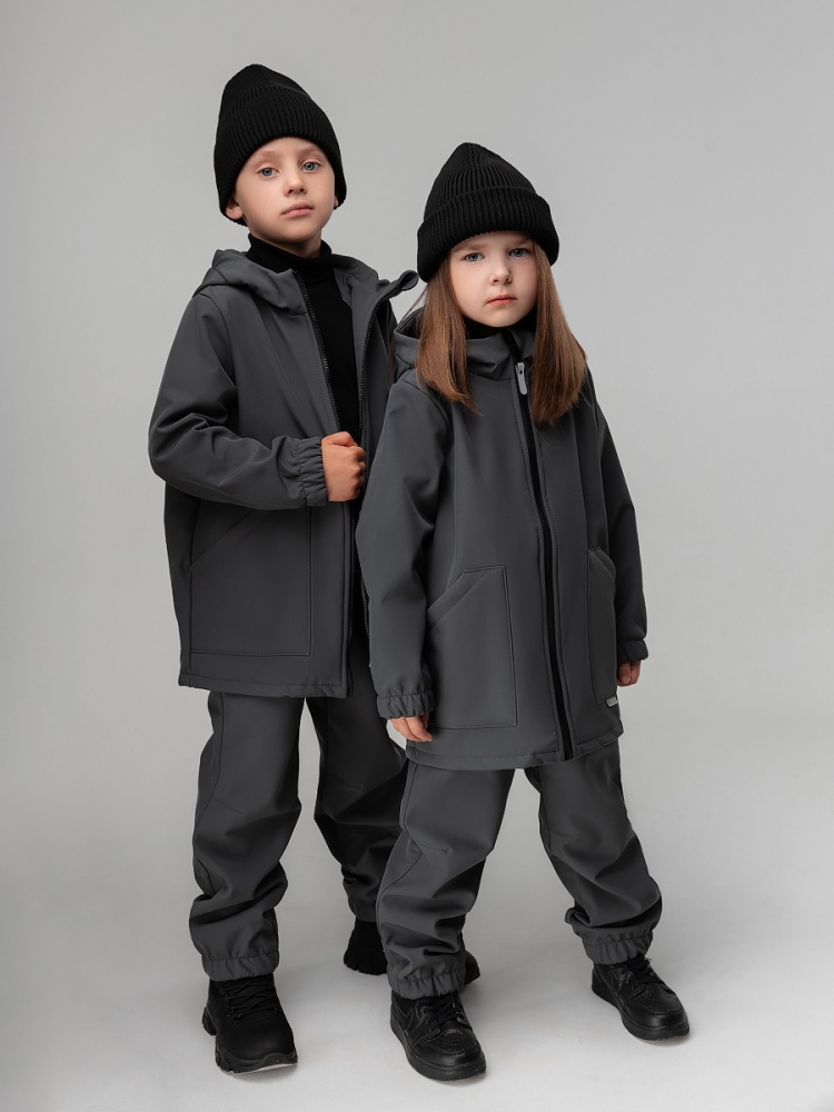 Материал софтшелл Состав 100% полиэстер Демисезонный ветронепроницаемый и дышащий костюм из материала softshell. Водо- и ветронепроницаемый материал softshell гарантирует комфорт в такую изменчивую весеннюю и осеннюю погоду. На куртке накладные карманы, на молнии светоотражающий пуллер, защитная планка, несъемный капюшон. Брюки - джоггеры, пояс - эластичная резинка, низ изделия - манжеты. Температурный режим от +5 до +15 гр., в зависимости от индивидуального теплообмена ребенка и промежуточного слоя одежды.