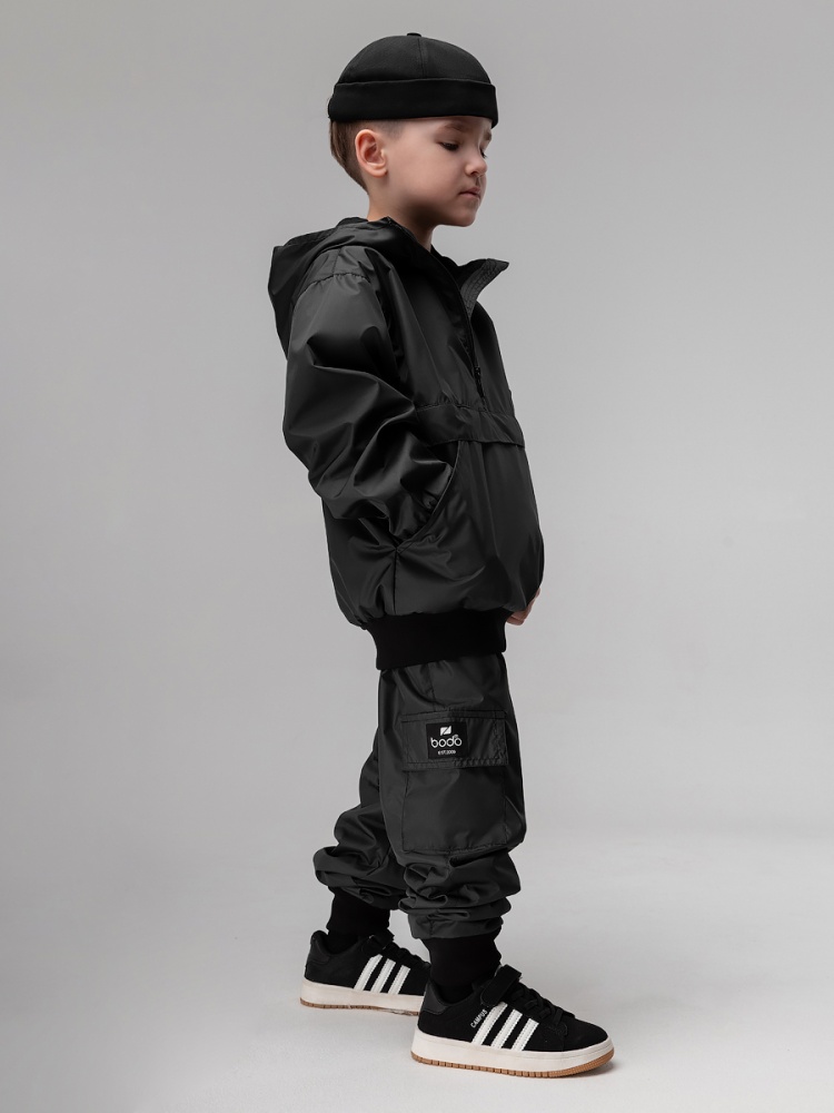 Материал Дюспо Состав 100% полиэстер Костюм из плотного и стойкого к изнашиванию и повреждениям материала Дюспо, состоит из анорака и брюк, идеально подойдет для повседневной носки и активного отдыха. Анорак, детали: сквозные боковые карманы, несъемный капюшон на стойке закрывает шею, молния с защитой подбородка.Анорак надевается через голову.Брюки - джоггеры, пояс - эластичная резинка, низ изделия- манжеты. Материал верха: Дюспо, материал подклада хлопок 100 %, материал подклада на рукавах таффета.