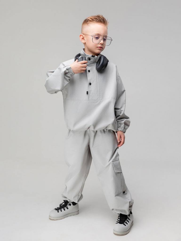 Артикул 32-88MU Состав 60% хлопок 40% полиэстер Материал курточная ткань Костюм: анорак и брюки. Свободная куртка без подклада на молнии с планкой на кнопках. Рукава с манжетой на резинке. По низу куртки имеется утяжка. Свободные, прямые брюки на поясе с внутренней резинкой. Брюки с двумя видами карман, боковые карманы и накладной карман по левому боковому шву закрытый клапаном, по низу брюк имеется дополнительная резинка с фиксатором для затяжки. Материал верха: курточная ткань 60% хлопок, 40% нейлон, плотность 155 г/кв.м.