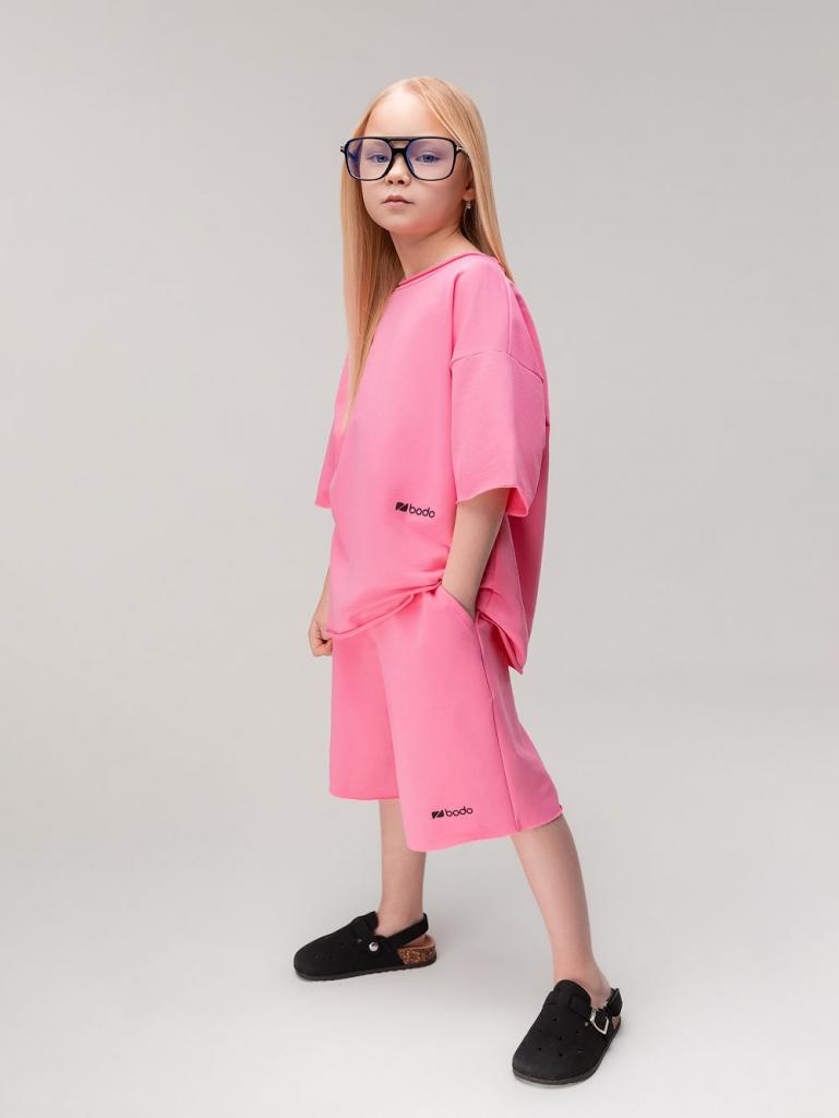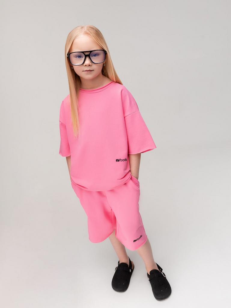 Артикул 11-665MU Состав 92% хлопок 8% лайкра Материал футер двухнитка Костюм: футболка и шорты. Свободная футболка с коротким рукавом. Горловина футболки округлой формы с необработанным краем. Низ изделия и низ рукава не обработаны. Шорты прямые, свободные на поясе с внутренней резинкой, с боковыми карманами. Шорты по низу изделия с необработанным краем.
