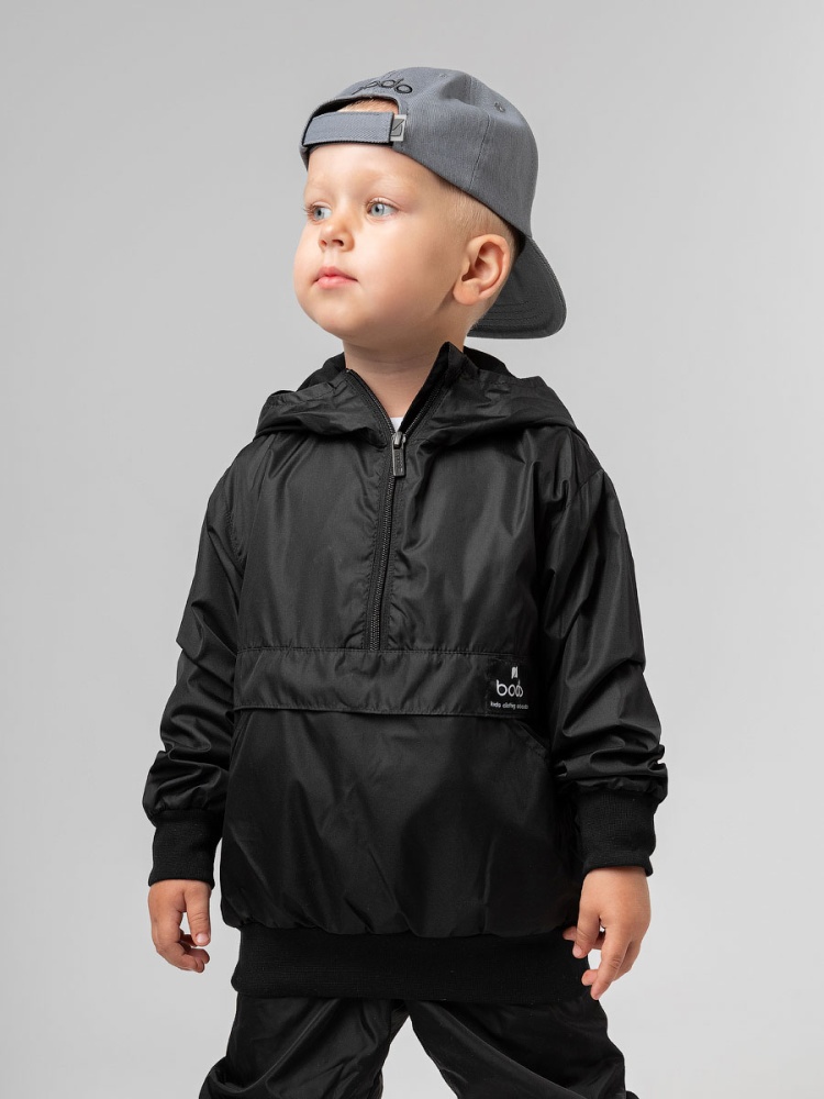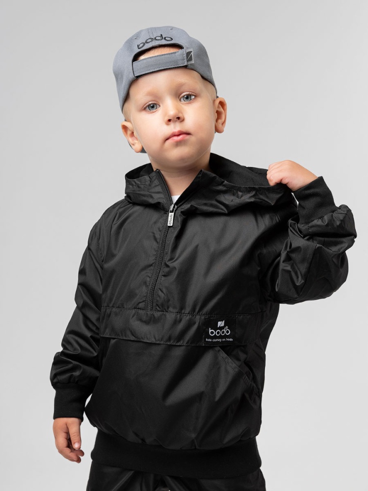 Материал Дюспо Состав 100% полиэстер Стильная ветровка анорак для детей. Материал верха: Дюспо, материал подклада хлопок 100 %, материал подклада на рукавах таффета. Материал Дюспо: водоотталкивающий, воздухообменный и ветрозащитный. Детали: сквозные боковые карманы, несъемный капюшон на стойке закрывает шею.Температурный режим от +8 до +15.