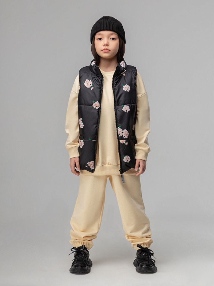 Материал курточная ткань Состав 100% полиэстер Жилет для детей дошкольного возраста. Жилет утеплённый на подкладке, прямого силуэта, с центральной бортовой застёжкой на кнопках. Воротник стойка. На полочке расположены карманы. Материал верха: курточная ткань Милан 100% полиэстер, утеплитель Hetta Filt 150 г/кв.м, подкладочный материал кулирная гладь 100% хлопок