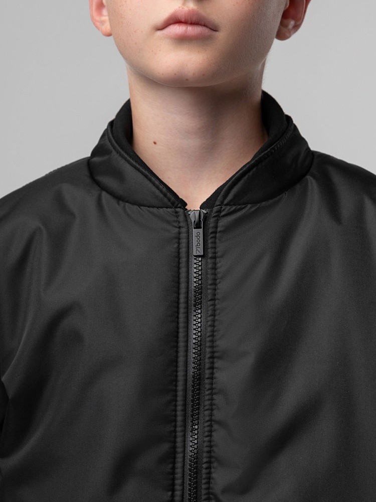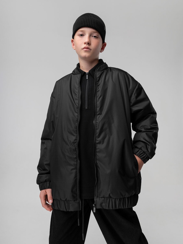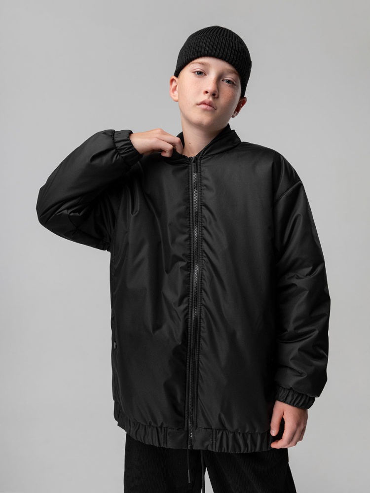 Материал Дюспо Состав 100% полиэстер Демисезонный подростковый бомбер свободного кроя. Модель оверсайз без капюшона на молнии, манжеты и воротник из основного полотна, воротник стойка. Куртка предназначена для температурного режима от +5 до +15 С градусов, будет комфортно в сезон весна/осень. Бомбер органично смотрится с разным сочетанием стилей, кэжуал, спортивный или классика, отличный выбор для повседневной носки, предназначен для подчеркивания вашей индивидуальности. Изделие дополнено брендированной светоотражающей нашивкой на спинке. Материал верха: Дюспо 100% полиэстер, утеплитель Hetta micro 100 г/м², подкладочный материал кулирная гладь 100% хлопок