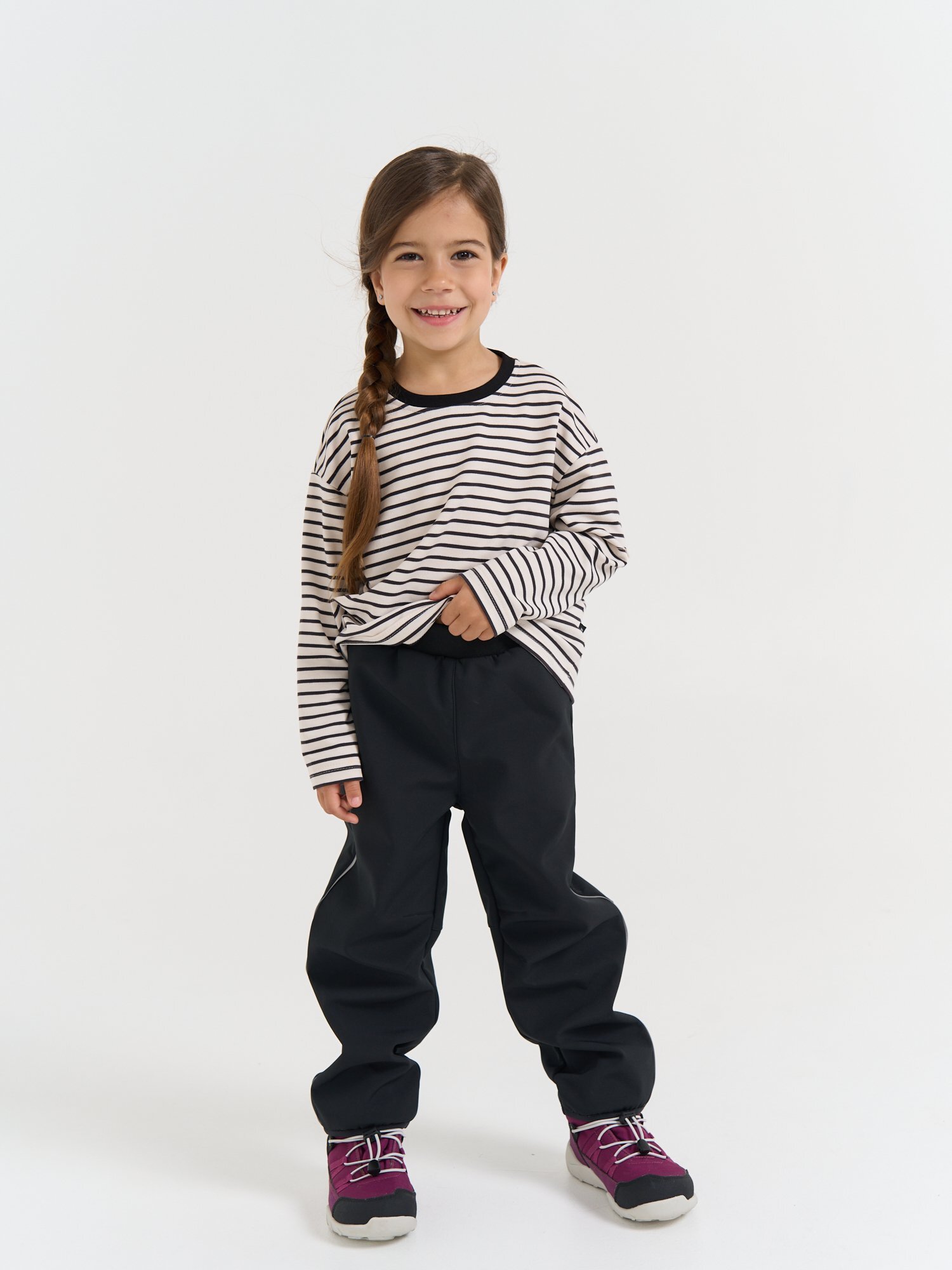 Вытачки на коленях делают модель удобной для приседаний, лазанья и катания с горки.