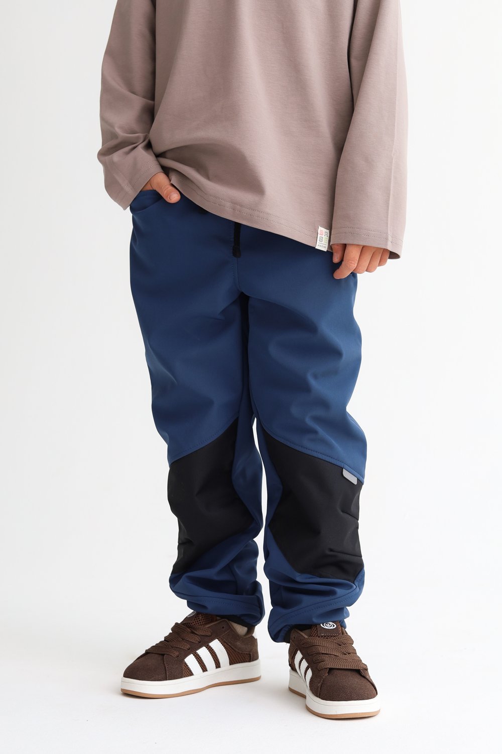 Мамы, время расслабиться и выдохнуть, ваш ребенок в надежной защите от промокания, грязи и слякоти. Брюки из трехслойной эластичной ткани обеспечат сухость и комфорт во время прогулок в мокрое межсезонье, а вам оставят пару часиков отдыха после, ведь эта ткань отталкивает грязь.