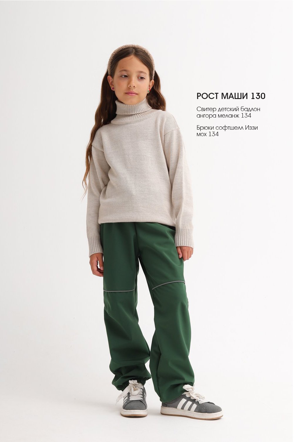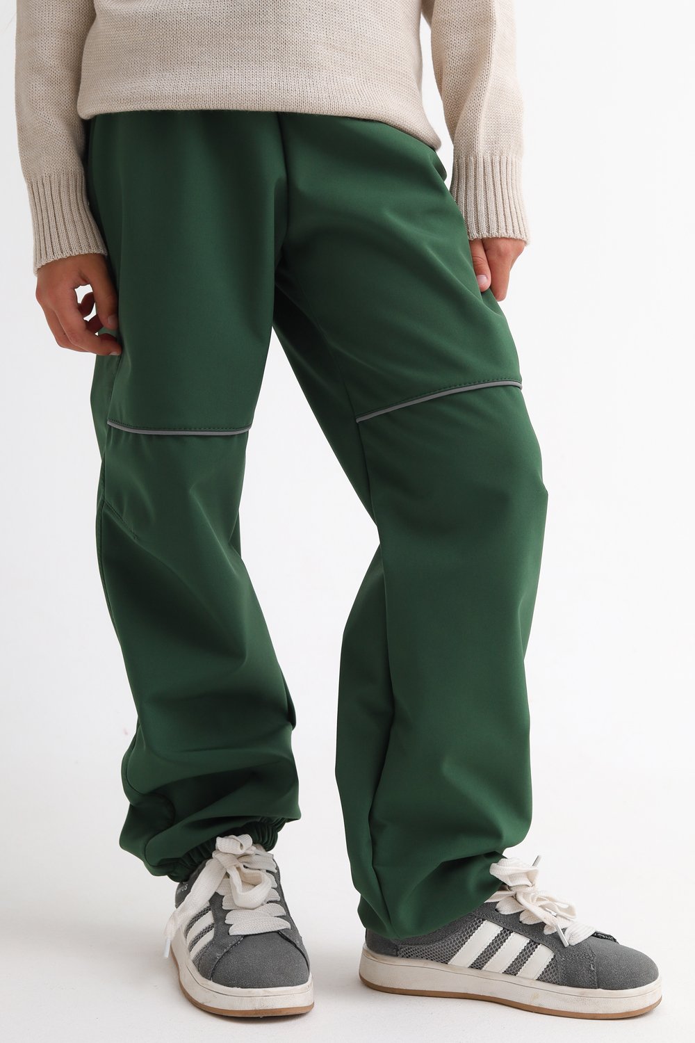 Брюки свободного кроя, прямого силуэта. Пояс на мягкой резинке, дополнительно регулируется шнуровой резинкой с фиксатором. Анатомическая вытачка  в области колен. Низ брюк оформлен манжетами на резинке. Световозвращающие элементы.Примерный температурный режим от -5°С до +18°С.