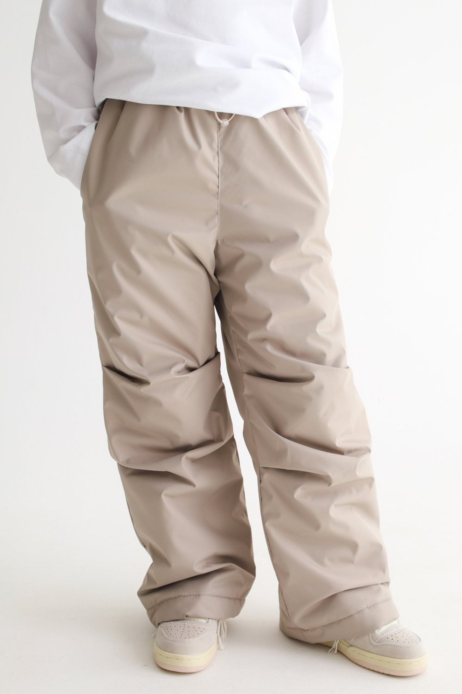Брюки свободного силуэта из мембранной ткани с высокими показателями 10к/10к. Пояс на резинке с утяжкой на шнуровую резину. Карманы в боковых швах. Штанины с защипами в области колен, с регулируемыми утяжками по низу с доступом изнутри.