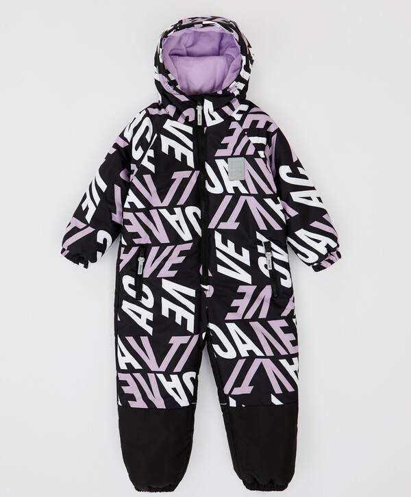 цветосновная ткань:100% полиэстер; отделочная ткань:100% полиэстер; подкладка 1:100% полиэстер; подкладка 2:100% полиэстер; утеплитель:100% полиэстер До -10°С Полиэстер Комбинезон демисезонный непромокаемый с капюшоном, вшитыми лямками и принтом мультицвет для девочки Button BlueМембрана; синтепон 100г/м2; подкладка - флис