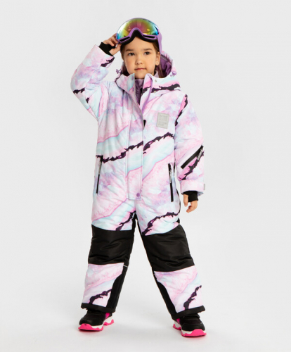 3990 р. 5700 р. Комбинезон демисезонный непромокаемый с капюшоном, вшитыми лямками и принтом мультицвет для девочки Button Blue