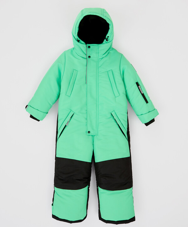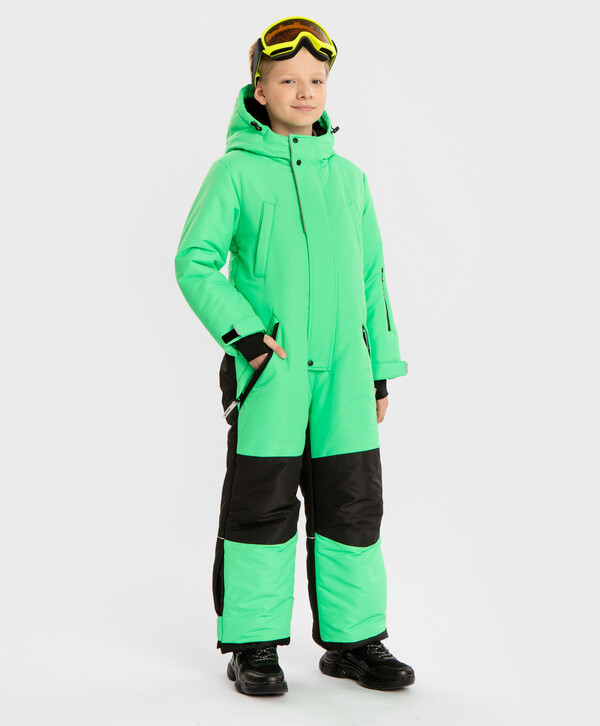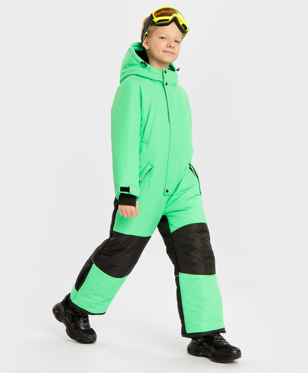 4340 р. 6200 р. Комбинезон зимний непромокаемый с капюшоном, вшитыми лямками и пятью карманами зеленый для мальчика Button Blue
