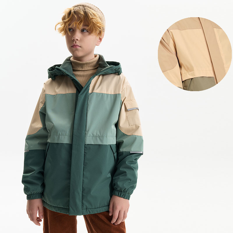 Состав: 100%полиэстер+мембрана, подклад: 100%полиэстер, утеплитель: 100%полиэстерОписание: Ветровка для мальчика на флисе — стильная и практичная лёгкая демисезонная куртка, которая подойдёт для весны и осени. Модель выполнена в универсальном песочном цвете. Фасон имеет прямой силуэт со спущенным плечом, что обеспечивает свободу движений. Куртка выглядит стильно и современно, а комфортный крой позволяет носить её и дошкольникам, и подросткам. Главная особенность модели — двухшовный глубокий капюшон с козырьком из светоотражающего материала. Он защищает голову и лицо от ветра и дождя, а также повышает безопасность в условиях низкой видимости. Внутренняя регулировка объёма по низу с помощью эластичного шнура позволяет подогнать посадку и надёжно удерживать тепло. Куртка застёгивается на прочную тракторную молнию с удобным пуллером. Для защиты подбородка предусмотрена мягкая вставка, а под молнией скрыта ветрозащитная планка, которая надёжно препятствует продуванию. Внутри ветровки — флисовый подклад, создающий уют и тепло даже в прохладную погоду. В рукавах используется подклад из полиэстера, благодаря чему куртка легко надевается. Такой вариант идеально подойдёт для межсезонья: рекомендованный температурный режим — от +5 °C. Накладные карманы с магнитной фиксацией удобны для хранения мелочей, внутренний карман на молнии и карман с клапаном на рукаве дают дополнительное пространство для вещей. В боковых швах и по центру спинки расположены светоотражающие элементы, которые делают ребёнка заметнее в тёмное время суток. Демисезонная ветровка для мальчика с капюшоном сочетает в себе стиль, комфорт и надёжную защиту от ветра и влаги. Она отлично подойдёт для активных игр на улице и для повседневной носки. Преимущества для родителей: -лёгкая, но тёплая за счёт флисового подклада: -регулируемая посадка по низу изделия: -надёжный капюшон с козырьком: -светоотражающие элементы для безопасности. Эта ветровка для мальчика подростка и дошкольника — лучший выбор для межсезонья. Она долговечна, устойчива к стиркам и надолго сохранит аккуратный вид.