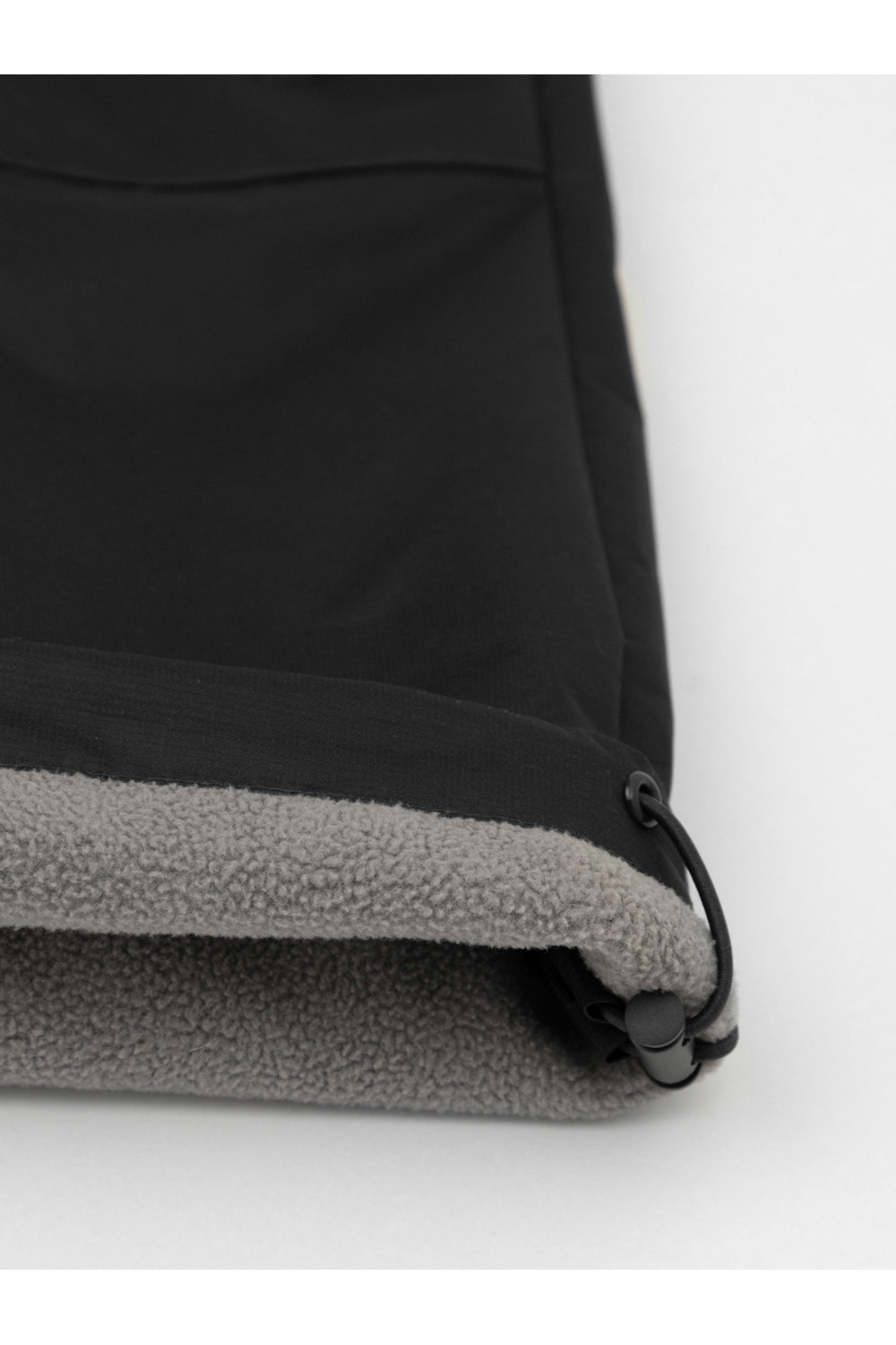 Ветровочные брюки из мембранной ткани с дополнительной тефлоновой обработкой. Данный вид обработки предохраняет изделие от загрязнения и лучше отводит влагу. Подклад из флиса, 100% полиэстер. Эластичный пояс утягивается при помощи шнурка. Ширина низа регулируется утяжкой со стопперами. Во всех изделиях верхнего ассортимента для безопасности ребенка предусмотрены светоотражающие элементы.