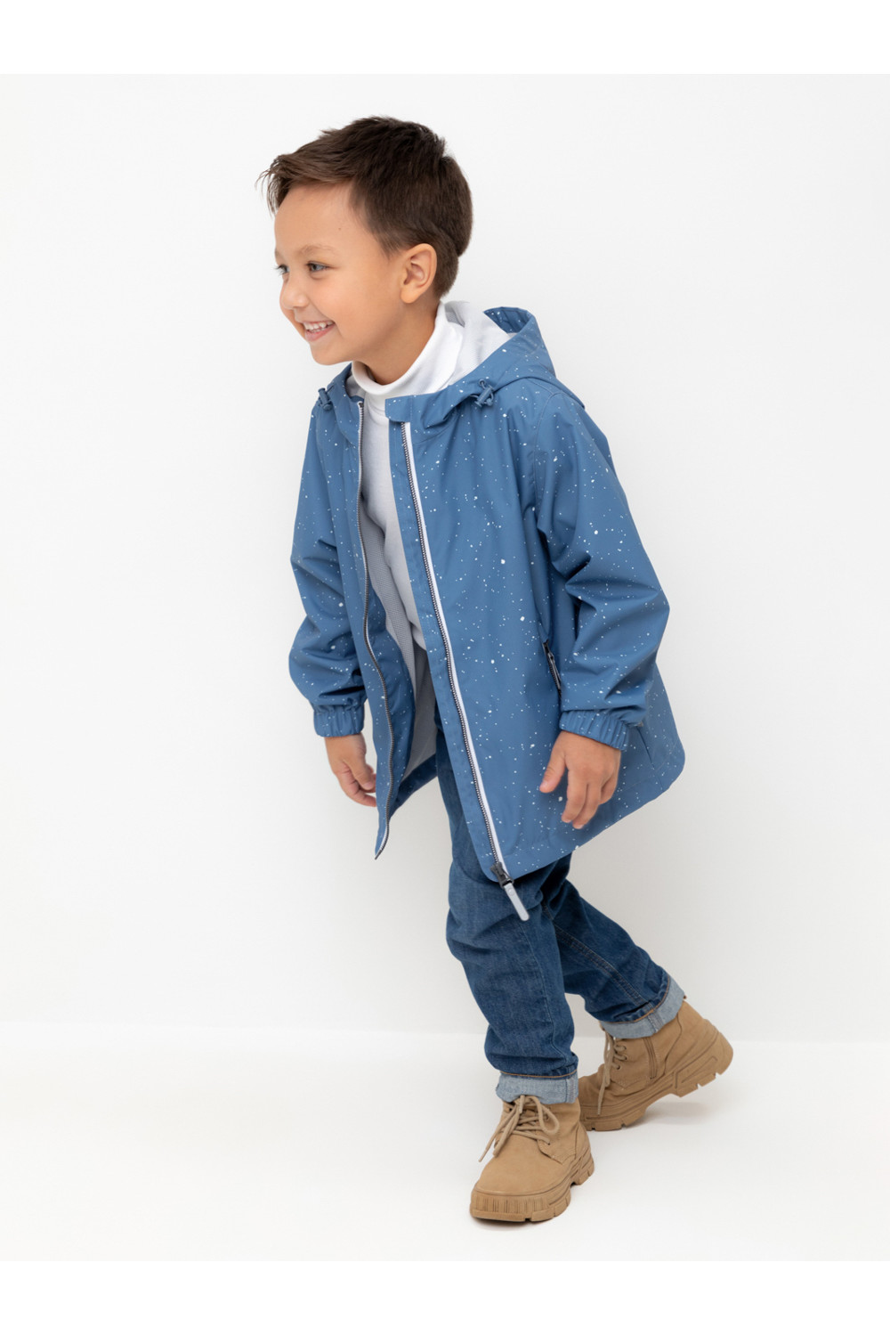 Ветровка для мальчика из мембранной ткани с дополнительной тефлоновой обработкой. Верхняя мембранная ткань 1000/1000 с тефлоновым покрытием отталкивает воду и грязь и обладает «дышащими» свойствами. Подкладка выполнена из сетки, 100% полиэстер. У изделия предусмотрена защита подбородка. Несъемный капюшон регулируется с помощью эластичного шнура со стопперами. Низ рукавов имеет эластичную резинку для лучшего прилегания. Во всех изделиях верхнего ассортимента для безопасности ребенка предусмотрены светоотражающие элементы.