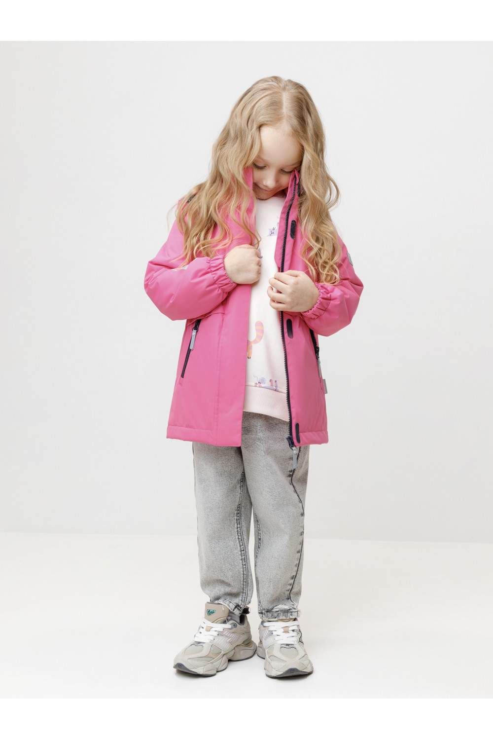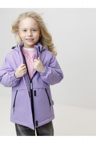 Демисезонная куртка для девочки с утеплителем Fellex®: 120 г/м2. Выполнена из мембранной ткани с тефлоновой обработкой. Данный вид обработки предохраняет изделие от загрязнения и хорошо отталкивает влагу. Подклад из 100% полиэстера. Куртка застёгивается на молнию и дополнительно защищена внешней ветрозащитной планкой на липучках. Предусмотрена защита подбородка. Несъёмный капюшон имеет эластичную утяжку со стопперами. Низ рукавов на эластичной резинке для лучшего прилегания. По бокам два кармана. Во всех изделиях верхнего ассортимента для безопасности ребёнка предусмотрены светоотражающие элементы.