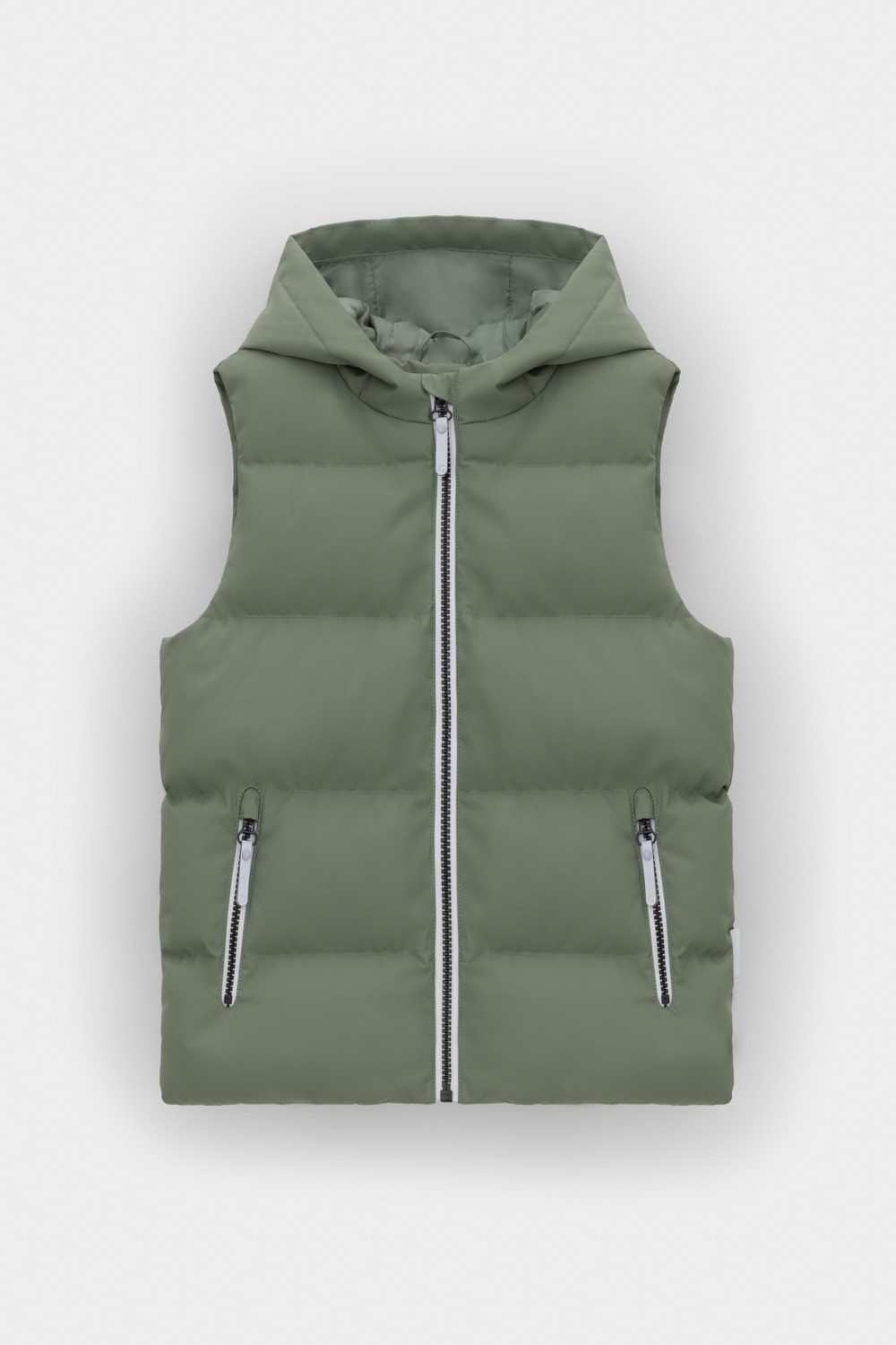 Стеганый жилет с капюшоном для мальчика с утеплителем Fellex®: 120 г/м2. Выполнен из мембранной ткани с дополнительной тефлоновой обработкой. Данный вид обработки предохраняет изделие от загрязнения и лучше отводит влагу. Подклад из 100% полиэстра. Капюшон не снимается. Изделие застёгивается на молнию, предусмотрена защита подбородка. Два кармана по бокам застёгиваются на молнии. Во всех изделиях верхнего ассортимента для безопасности ребенка предусмотрены светоотражающие элементы.