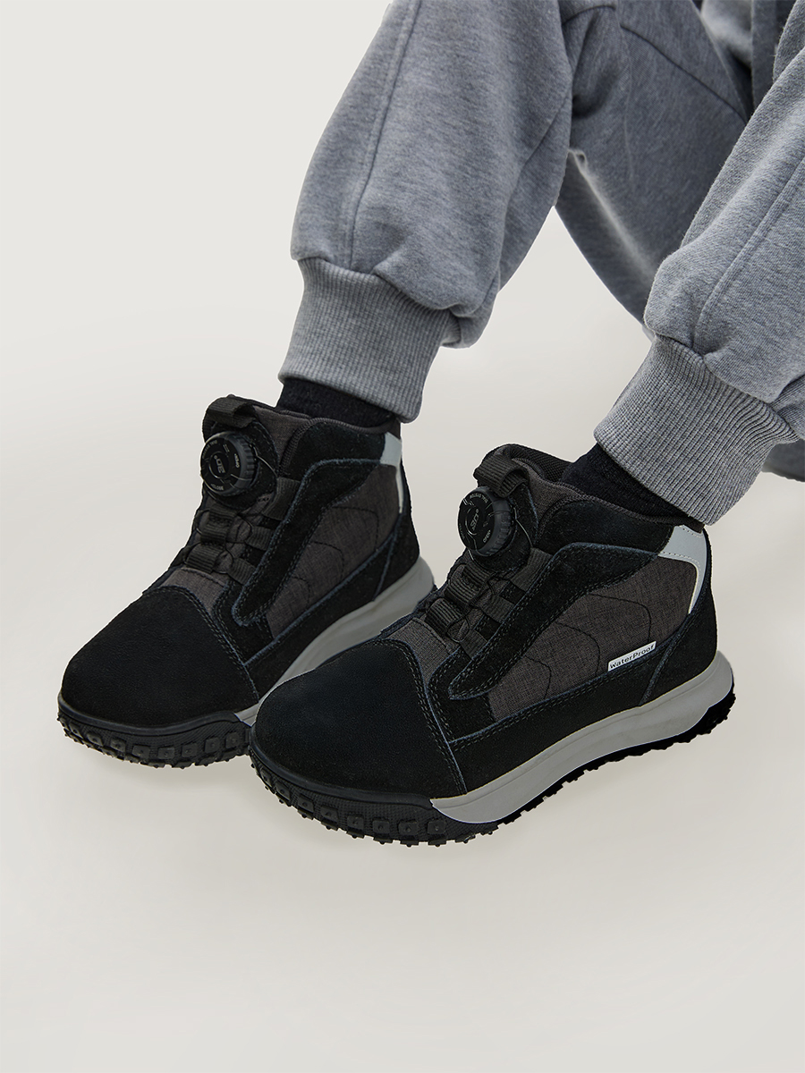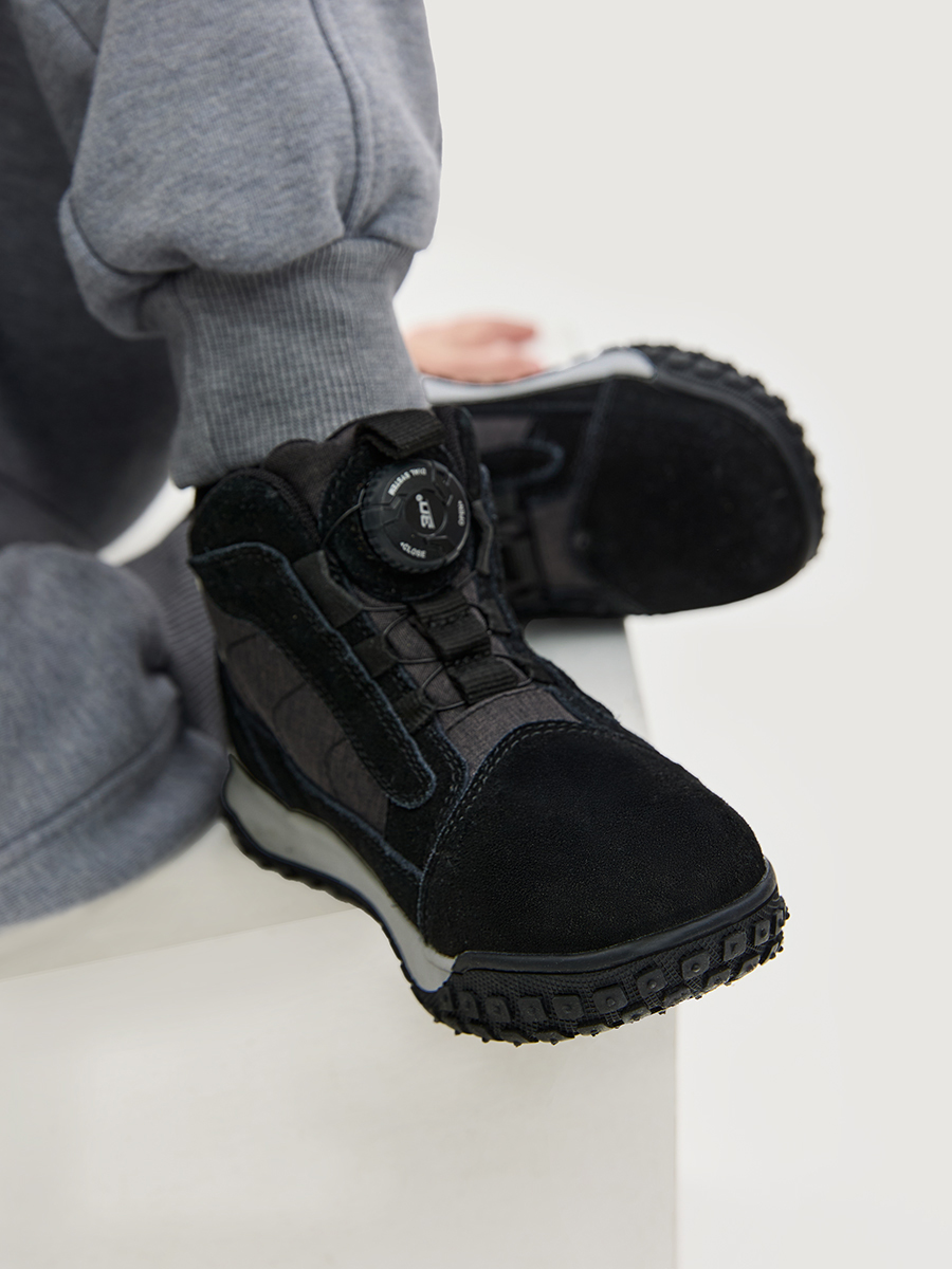 Эти ботинки ребенок легко обует самостоятельно, быстрая шнуровка обуви "Freelock System", позволяет с помощью специального устройства, крепящегося на ботинок буквально парой оборотов регулятора затянуть струны-шнурки, а оттянув регулятор, ослабить натяжение шнурков.
